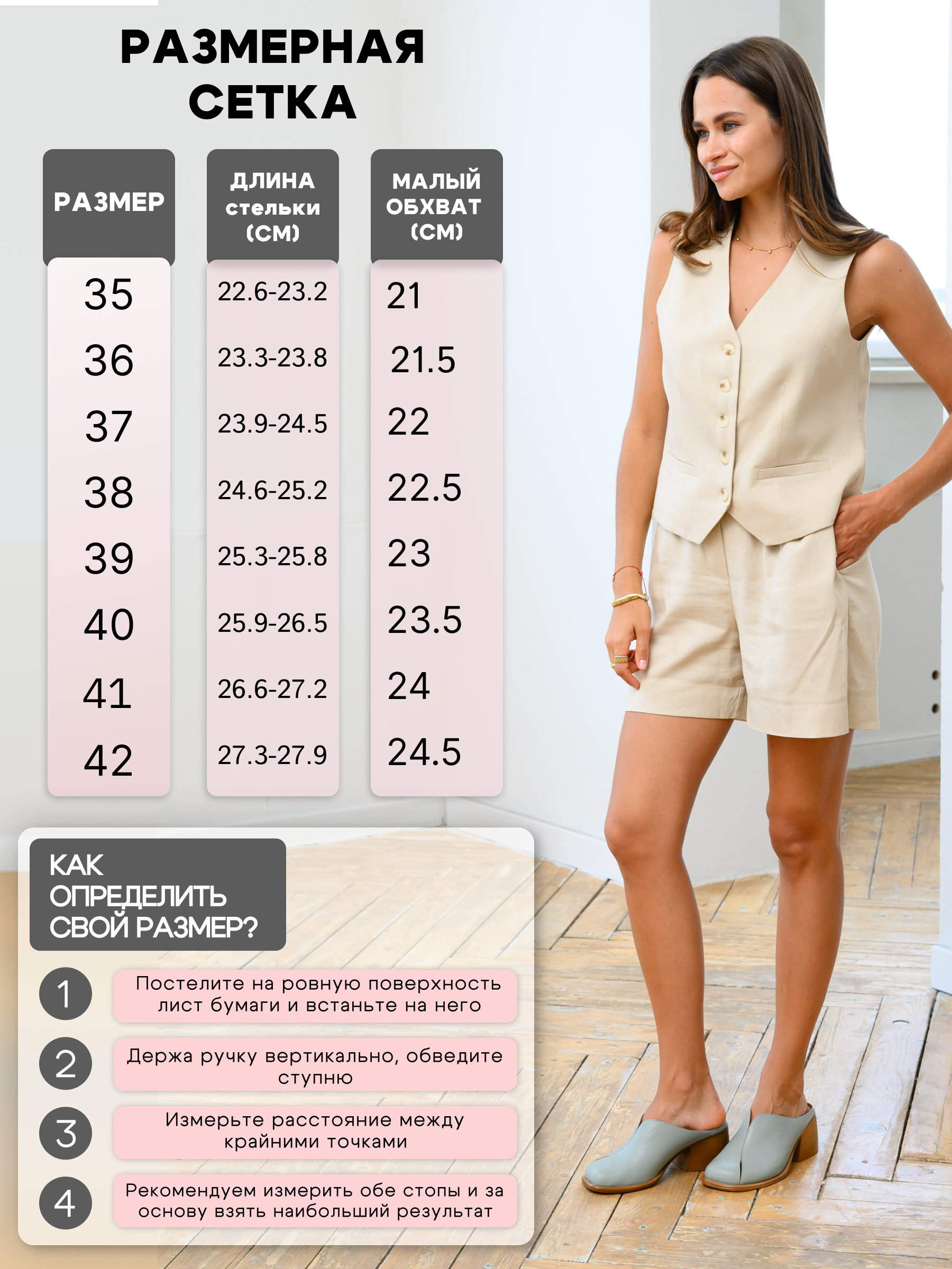 Длина стопы | 22,6-23,2 | 23,3-23,8 | 23,9-24,5 | 24,6-25,2 | 25,3-25,8 | 25,9-26,5 | 26,6-27,2 | 27,3-27,9 |