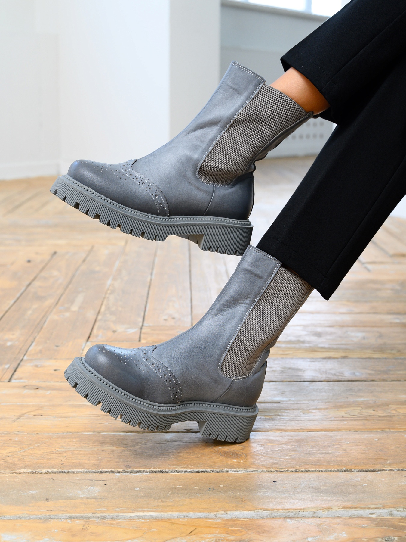 Челси кожаные серые
