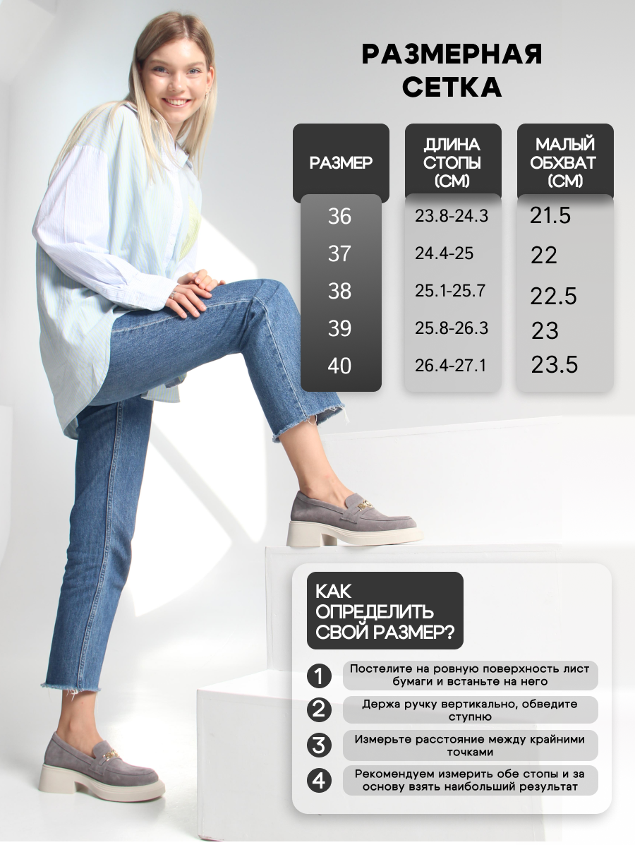 | Длина стопы | 23,8-24,3 | 24,4-25 | 25,1-25,7 | 25,8-26,3 | 26,4-27,1 |