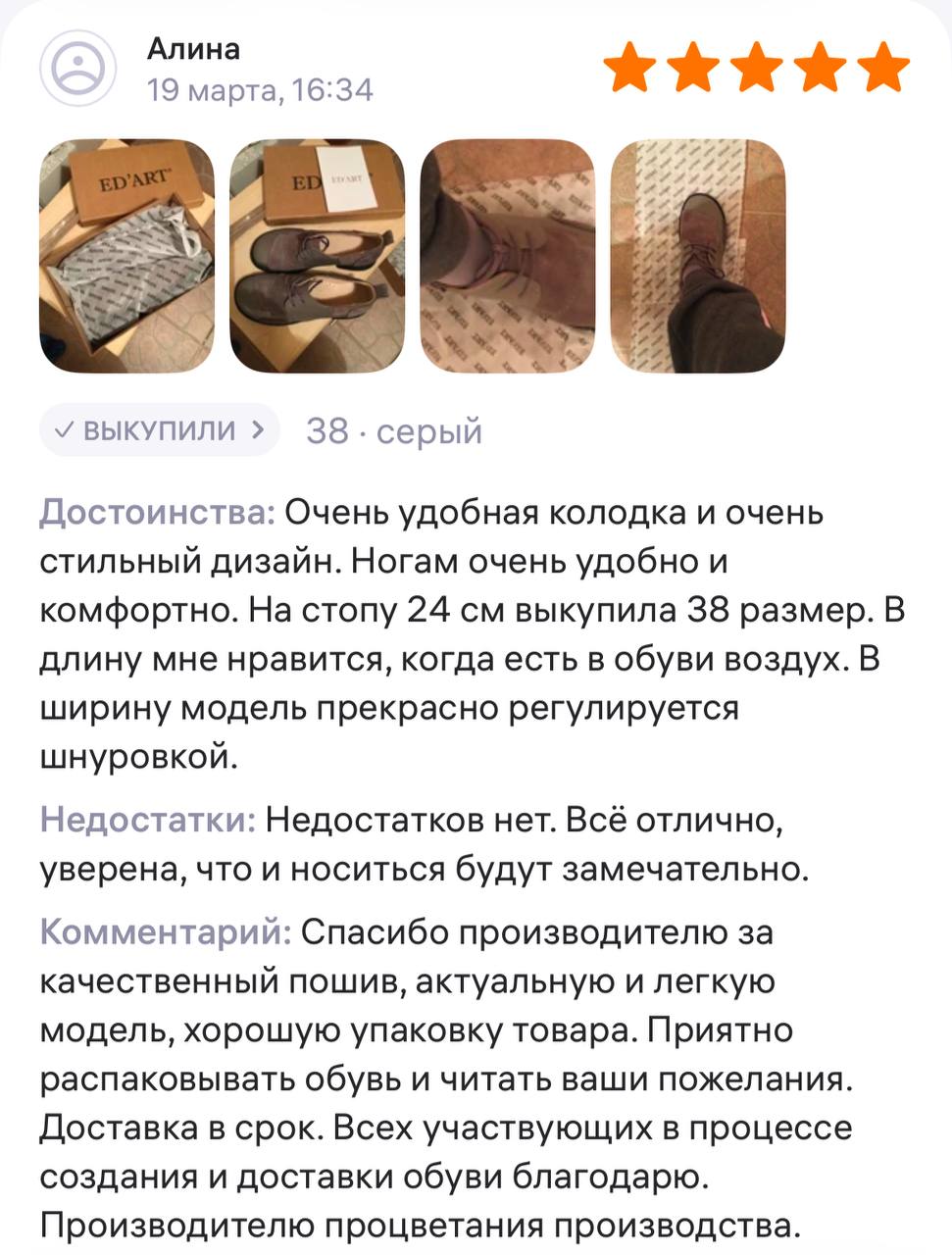 | Размер | 36 | 37 | 38 | 39 | 40 | 41 |