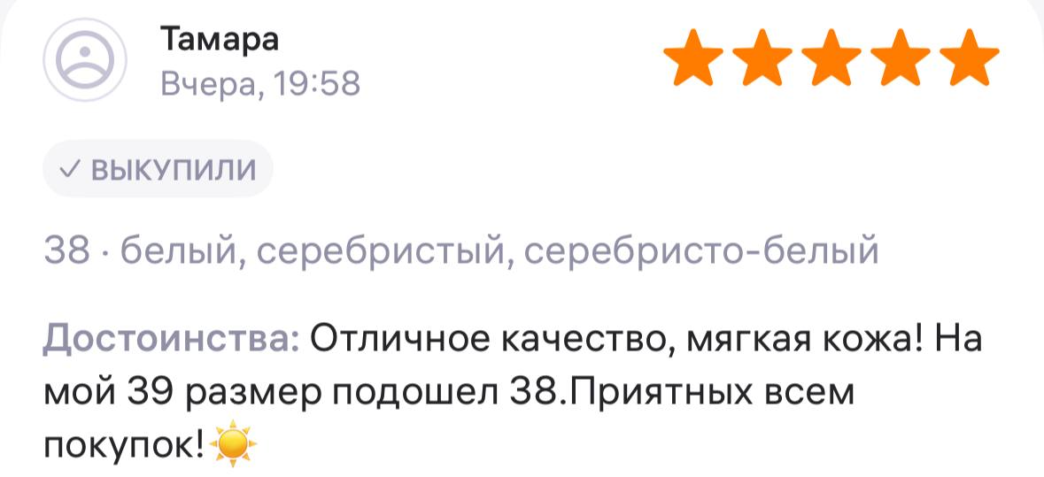 | Размер | 36 | 37 | 38 | 39 | 40 | 41 |