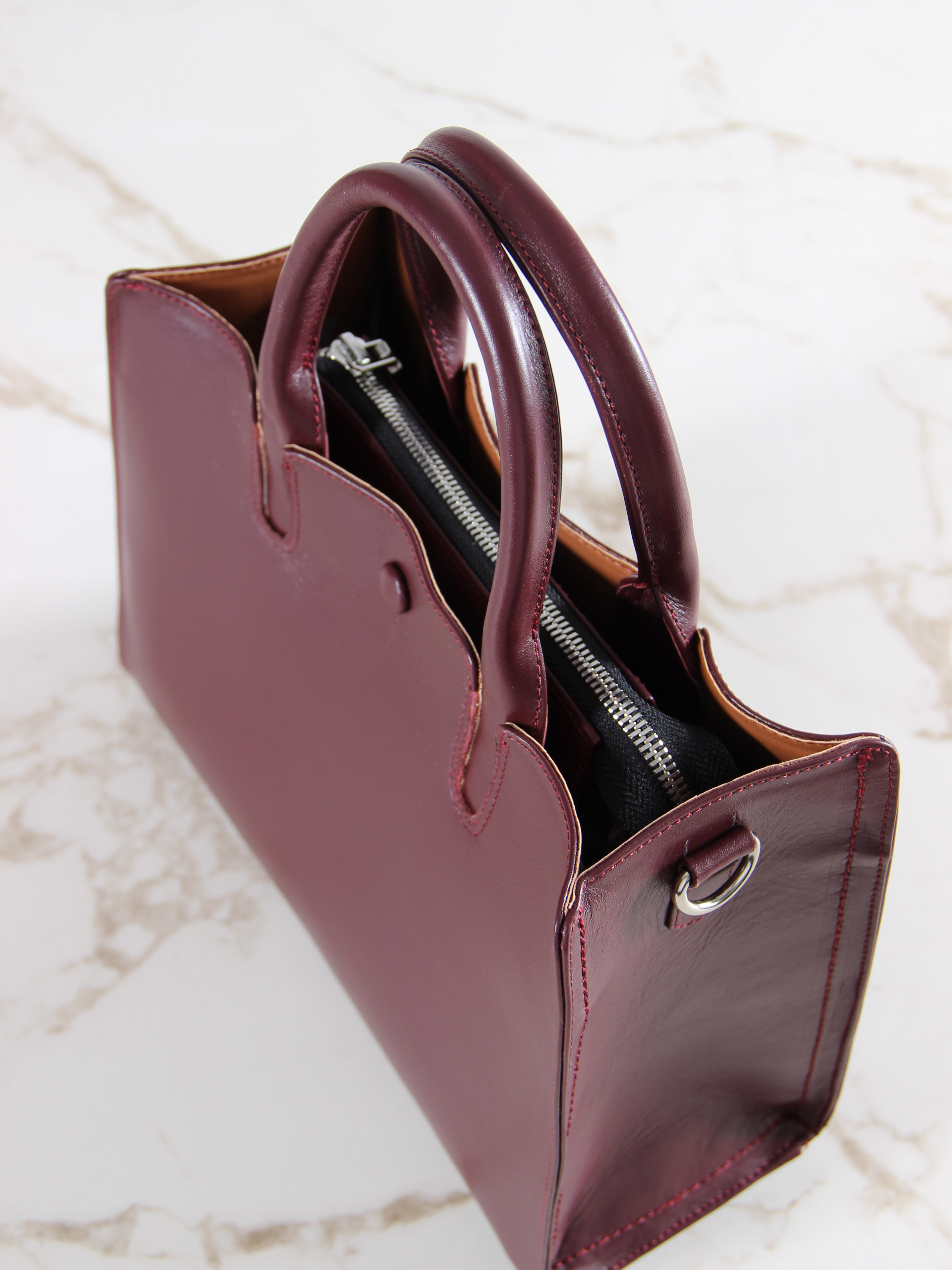 Сумка кожаная бордовая