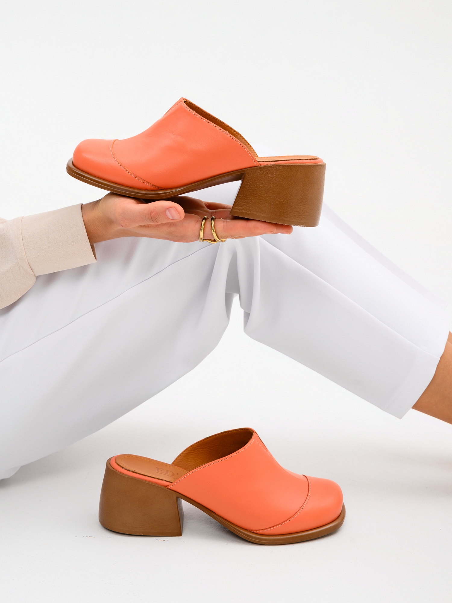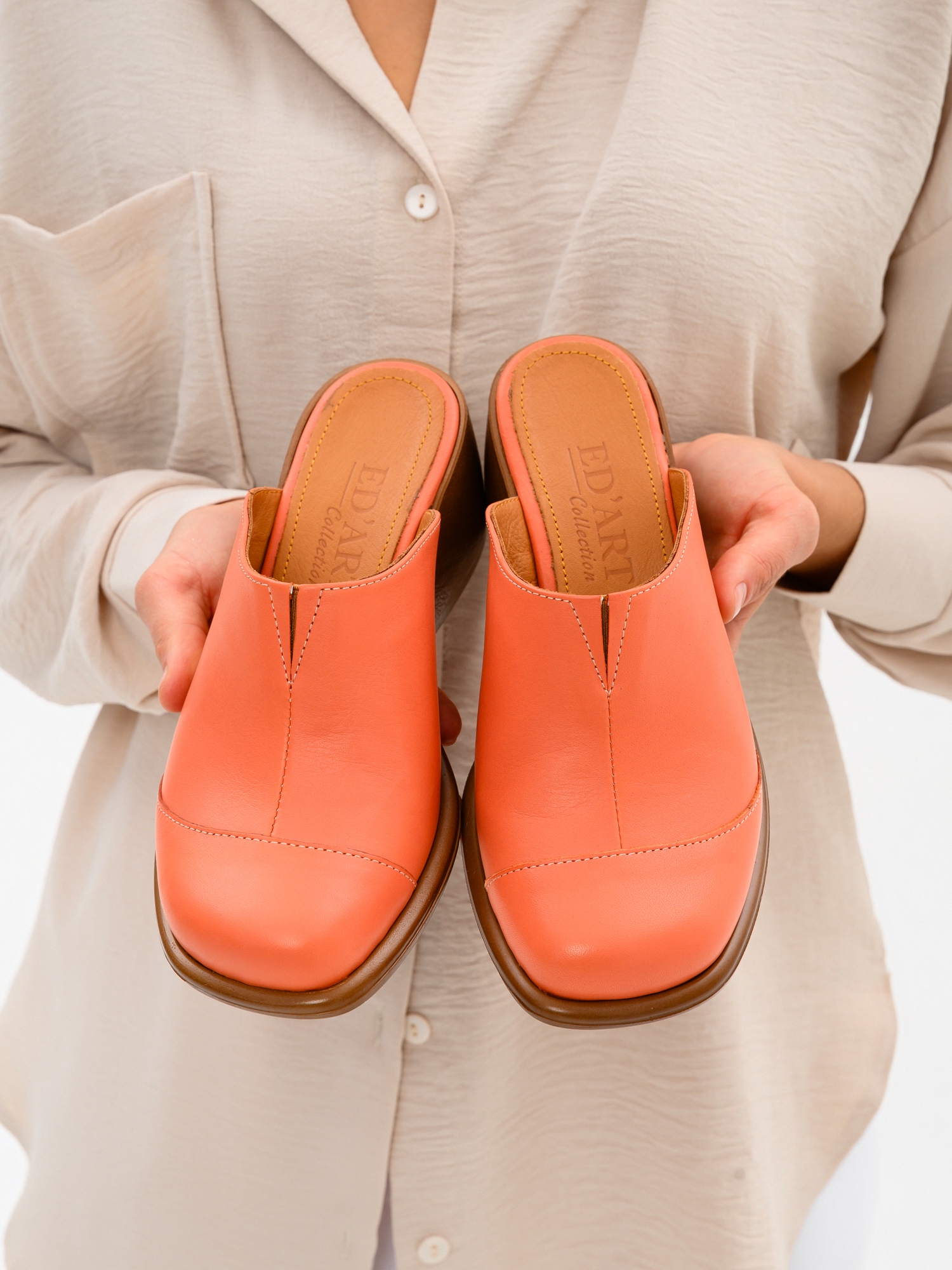 Сабо кожаные розовые