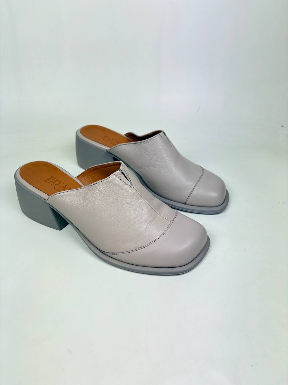 Сабо кожаные серые
