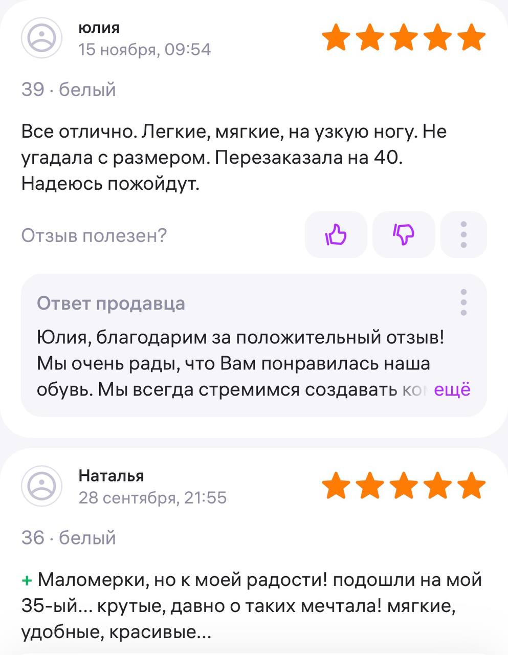 | Размер | 35 | 36 | 37 | 38 | 39 | 40 | 41 | 42 |