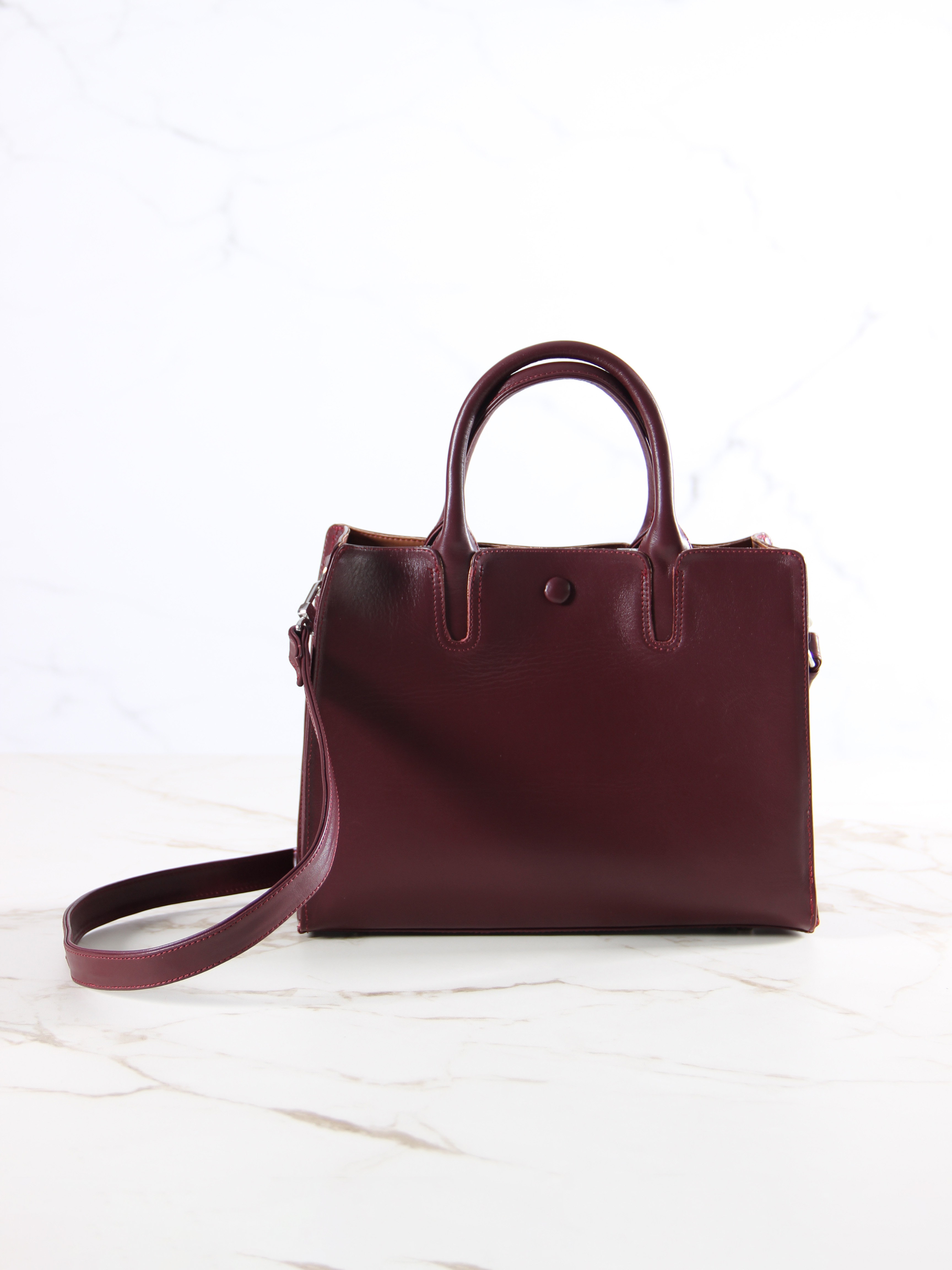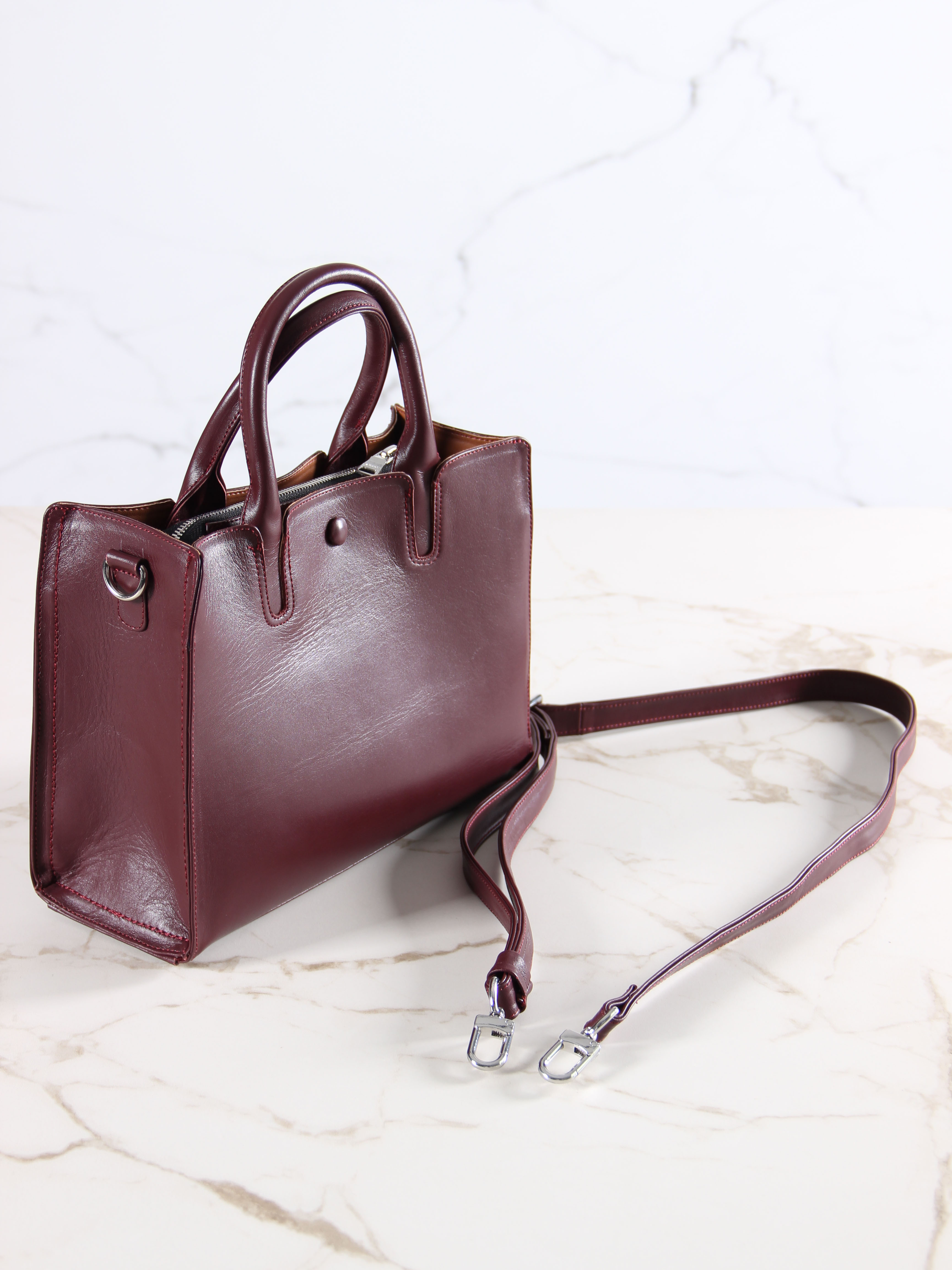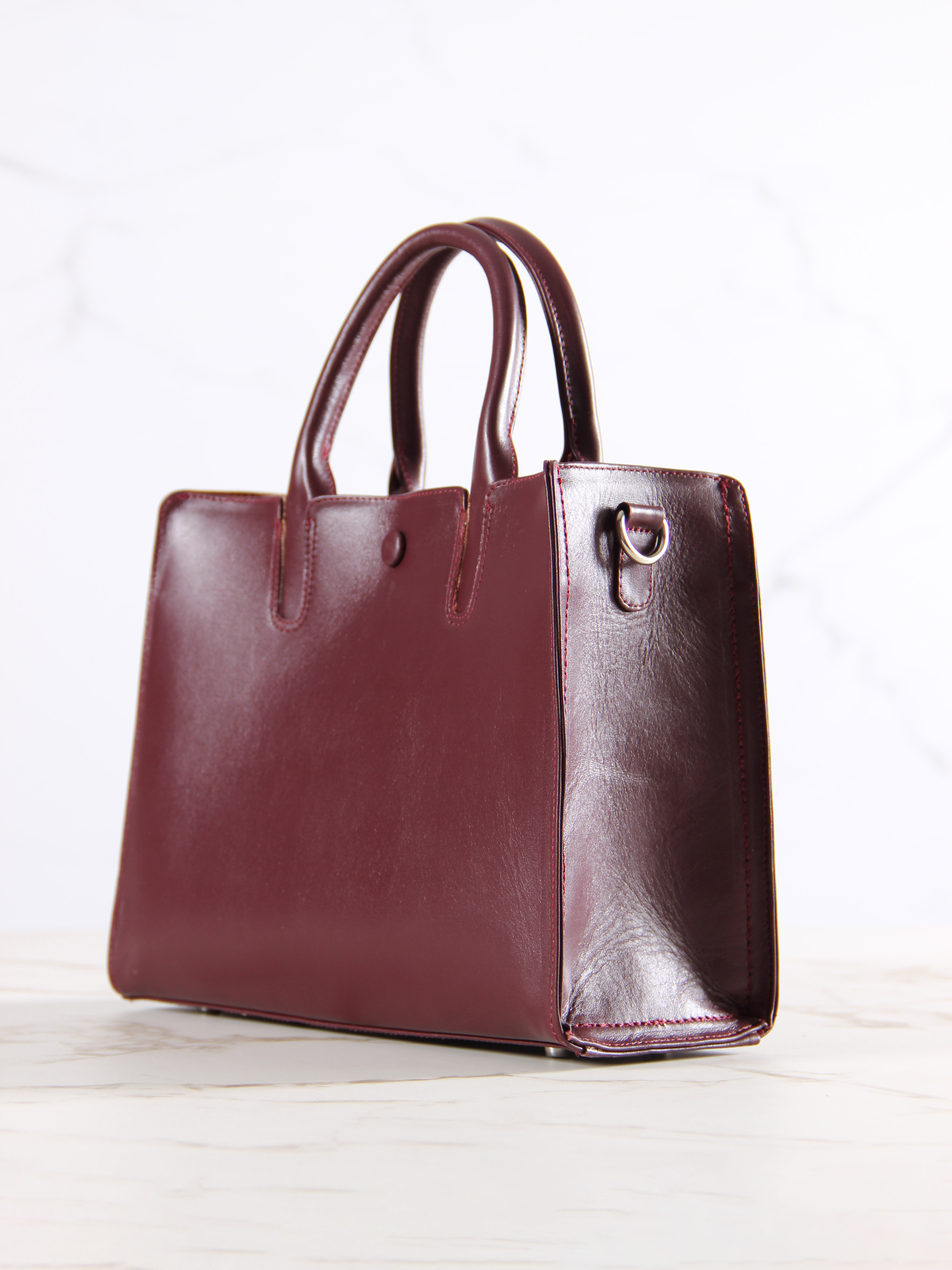 Сумка кожаная бордовая
